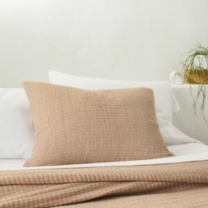 Complete su arreglo de ropa de cama con esta funda de cobertor de cambray de algodón texturizado reversible de Casaluna™. Esta funda de almohada reversible brinda comodidad y estilo a la parte superior de su cama. Cuenta con un acabado texturizado en la parte superior y un color sólido en la parte posterior para cambiar instantáneamente el aspecto de tu cama. La tela 100% algodón ofrece un uso cómodo y el cierre de cremallera ayuda a mantener intacta la almohada insertada de forma segura y ordenada. Combínalo con la colcha a juego para completar un estilo de dormitorio coordinado.