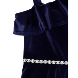 Características: Diseño de un hombro; tela de terciopelo suave; detalle de volante en el escote; ribete enjoyado en la cintura