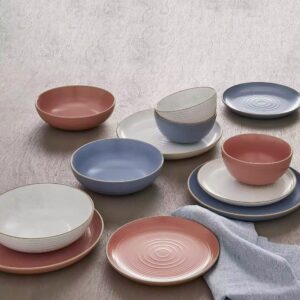 4 Platos planos de ensalada de gres, Azul – Linden Street