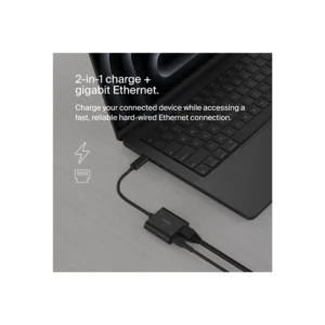 Aumente su potencia con el Belkin Connect USB-C a Ethernet + Adaptador de carga. Con este adaptador fácil de usar, disfrutarás de 100W USB Power Delivery más una conexión Gigabit Ethernet compatible con [10/100/1000] Mbps para una conexión rápida a Internet. Su diseño ligero hace que sea fácil de trabajar en cualquier lugar sin la molestia de un adaptador voluminoso