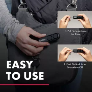 Compacto y fácil de transportar: Su diseño compacto es discreto, por lo que no es obvio que lleva una alarma personal. El llavero integrado se adhiere a las llaves y bolsos, lo que facilita su transporte.