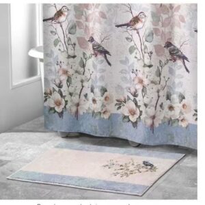 La alfombra Avanti Love Nest está confeccionada en 100% algodón y tiene un pájaro bordado descentrado posado en una rama. La alfombra de color marfil tiene un borde superior e inferior con un borde azul a juego. La parte trasera antideslizante ayuda a prevenir deslizamientos y resbalones. Importado.