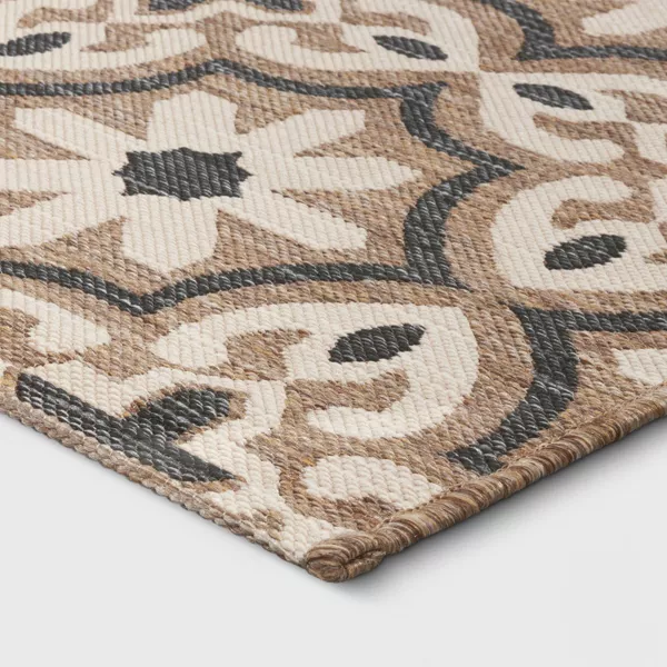 Cree un refrescante refugio al aire libre con esta alfombra de exterior con azulejos tonales de Threshold. Esta alfombra rectangular está decorada con un patrón tejido de azulejos tonales para añadir un toque artesanal a su decoración. Su construcción de pelo plano con reverso de látex la convierte en una excelente opción para zonas de mucho tránsito. Además, se limpia fácilmente con una manguera de agua para un mantenimiento sencillo.