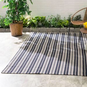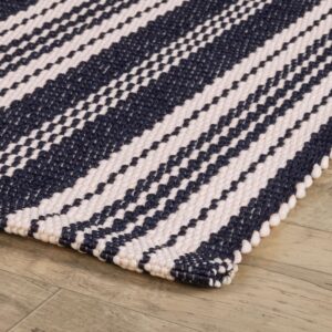 Alfombra tejida a mano con rayas azul marino/marfil, 8″x 10″ -Home Conservatory