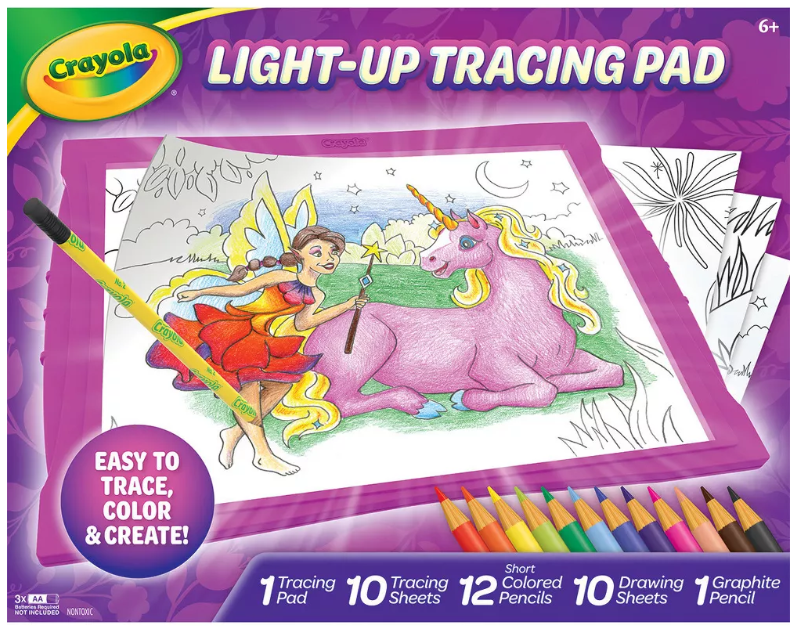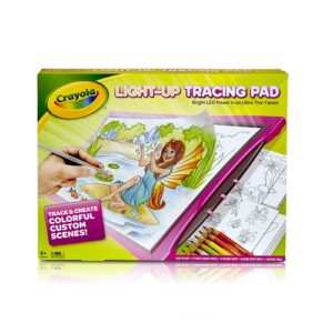 Light-Up Tracing Pad permite a los niños trazar y colorear escenas detalladas. El diseño de tableta ultradelgada y la brillante superficie de dibujo LED facilitan el rastreo. Comience a rastrear de inmediato con el contenido adentro, luego descargue cientos de imágenes en línea. El marco de bloqueo de papel mantiene la hoja en su lugar para mantener líneas de trazado nítidas.