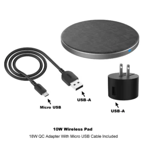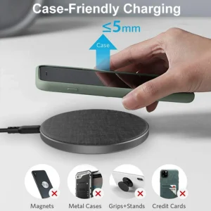¡Encender! Deseche esos cables y entre en el siglo XXI con nuestra plataforma de carga inalámbrica cubierta de tela. Hemos eliminado la molestia de la carga, simplemente coloque su dispositivo habilitado para Qi en la plataforma de carga y ¡cárguelo! Nuestra plataforma de carga inalámbrica cubierta de tela es compatible con Apple iPhone, Samsung Galaxy, Google Pixel y más habilitados para Qi. Tiene cinco vatios de potencia de carga para cualquier dispositivo habilitado para Qi, 7.5 vatios de potencia de carga rápida para dispositivos iPhone seleccionados y 10 vatios de potencia de carga rápida para dispositivos Samsung Galaxy seleccionados.