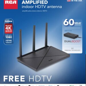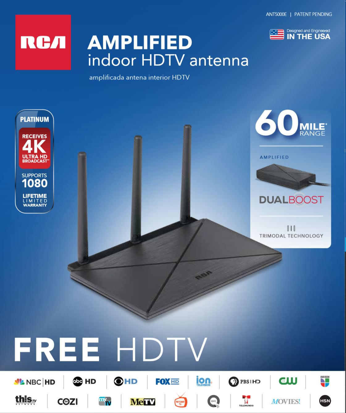 ¡Disfruta de la programación de la red HDTV y de tus programas favoritos gratis con esta antena de TV HD para interiores amplificada RCA con tecnología Trimodal! Cortar el cable – sin cuotas mensuales, sin suscripciones y sin contratos. Con la tecnología Dual Boost, obtienes más canales HD junto con la mejor imagen y sonido posible con la innovadora tecnología de amplificador de doble etapa.