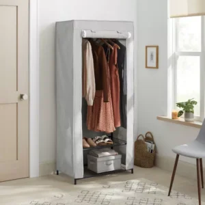 El armario tapizado en tela añade al instante espacio de almacenamiento estilo clóset para ropa, zapatos y accesorios.