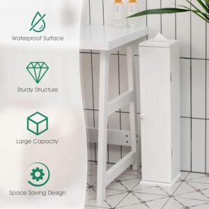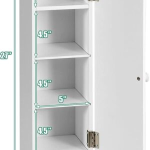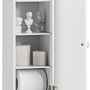 Construcción resistente y duradera: hecho de MDF P2 impermeable de alta calidad, este pequeño armario de baño es fácil de limpiar y estable, por lo que es la elección perfecta para el almacenamiento en el baño. También viene con una puerta con bisagras para proteger pañuelos y artículos de baño de derrames de agua.