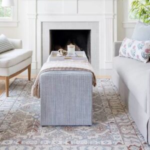 Traiga un impulso adicional de comodidad a su hogar con este banco Lynwood Cube de Threshold™ diseñado con Studio McGee. Rematado con un asiento acolchado, este banco de cubo rectangular ofrece un lugar cómodo para sentarse y un atractivo elegante, todo en una sola pieza. Un patrón de rayas limpio y nítido y un diseño simple le dan un ambiente moderno y contemporáneo a su espacio mientras se combinan fácilmente con casi cualquier decoración existente. Simplemente agregue algunos coloridos cojines y mantas al banco y cree un lugar acogedor para la familia y los amigos.