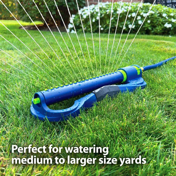 Cubre un área de hasta 18 x 22 m (400 m²): ideal para regar jardines cuadrados y rectangulares de tamaño mediano a grande (la cobertura depende del caudal y la presión del agua).
