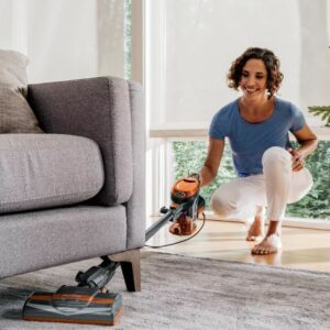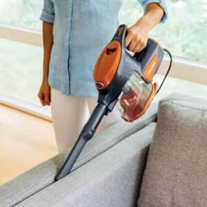 - Se convierte en una aspiradora de mano para limpiar pisos superiores