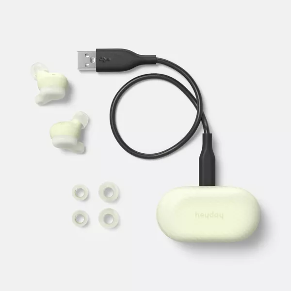 Experimenta un sonido excepcional con los auriculares True Wireless con cancelación activa de ruido de heyday™, diseñados para una comodidad constante y una conexión fluida. Con tecnología True Wireless, estos auriculares ofrecen una duración de batería de 6 horas con una carga completa, con un tiempo de recarga estimado de 1,5 horas. El micrófono integrado garantiza llamadas con manos libres, mientras que las almohadillas de silicona ofrecen un ajuste perfecto para un uso prolongado. Además, gracias a su diseño resistente al agua, son perfectos para entrenar, ir al trabajo y para el uso diario.