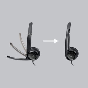 - Minimiza el ruido de fondo no deseado para conversaciones claras. El micrófono rígido del lado izquierdo se puede colocar para una mejor captura de voz. El brazo móvil se puede quitar del camino cuando no lo está usando.