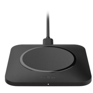 Agregue carga inalámbrica segura y fácil de usar a una mesa auxiliar o escritorio de oficina con la plataforma de carga inalámbrica BoostCharge Pro de 15 W de Belkin. Esta almohadilla proporciona una gran superficie para facilitar la alineación y la carga de su teléfono inteligente de forma inalámbrica. Compatible con la tecnología Qi, este pad proporcionará hasta 15 W de potencia a través del adaptador de corriente CA incluido. Para ayudar a garantizar una carga segura, BoostCharge Pro está equipado con dos sistemas de protección térmica para controlar la temperatura y evitar el sobrecalentamiento, así como la detección de objetos extraños.