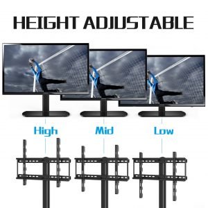 ¡El soporte de TV es ajustable en altura! 3 posiciones para adaptarse a diferentes aplicaciones o tamaños de TV. El televisor se puede elevar para instalar una barra de sonido o sensores de consola de juegos como el Kinect.
