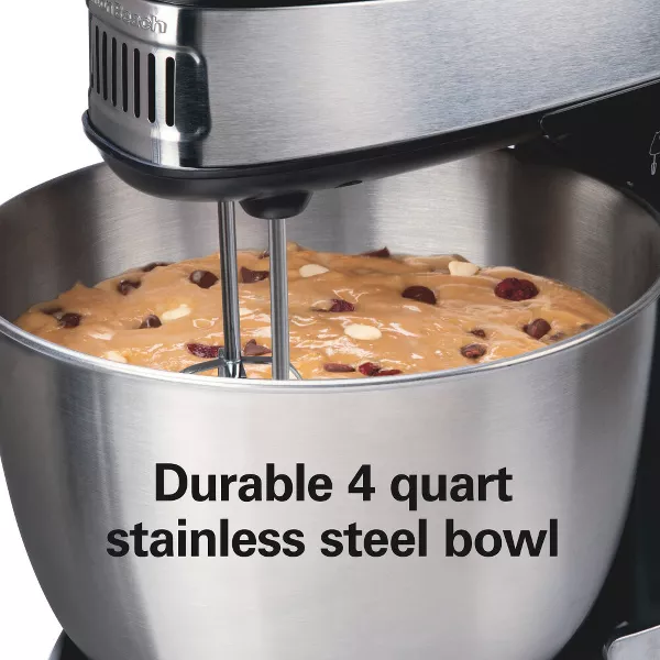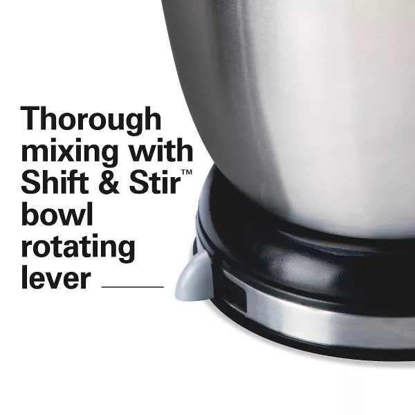 MEZCLA COMPLETA CON LA PALANCA GIRATORIA DEL TAZÓN SHIFT & STIR: Mientras mezclas, la batidora de pedestal Hamilton Beach cuenta con la palanca giratoria del tazón Shift & Stir™ que te permite girar el tazón de lado a lado para mezclar con precisión.