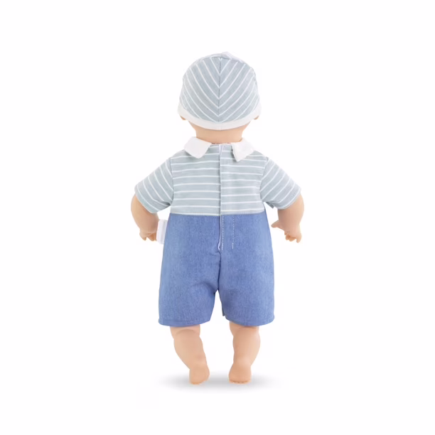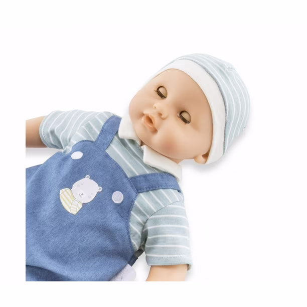 Bébé Calin Mael es una muñeca de 12 pulgadas que tiene el tamaño perfecto para ser acunada en los brazos de un niño pequeño y es ideal para abrazarla y abrazarla. El suave cuerpo de la muñeca se puede posar como un bebé real; incluso puede chuparse el dedo; También como un bebé de verdad. la cabeza de Mael; Los brazos y las piernas están hechos de un vinilo suave al tacto que está delicadamente perfumado con vainilla, una firma de Corolle, para que los abrazos que los niños le den a su muñeca sean tan dulces y memorables como los abrazos que les dan sus padres. Bébé Calin Mael tiene ojos azules somnolientos que se cierran cuando lo acuestan para tomar una siesta o antes de acostarse. Vestido con un mono azul; una camiseta a rayas con gorra a juego; Bébé Calin Mael es parte de la colección de muñecas mon premier poupon Corolle; Ropa y accesorios para empezar a jugar con muñecas. A partir de 18 meses.