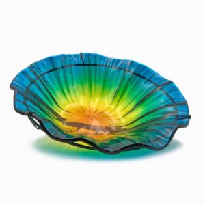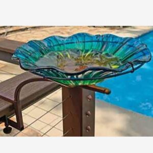 Este bebedero para pájaros de vidrio para montaje en cubierta de 11 pulgadas de ancho x 16 pulgadas de alto atraerá a los pájaros y agregará belleza a su jardín o paisaje. Está hecho de metal duradero con un hermoso recipiente de vidrio multicolor de 11 pulgadas de ancho. Es fácil de montar simplemente fijando el cuenco al soporte. El soporte se puede instalar utilizando la abrazadera o los tornillos incluidos. El recipiente mide 1 pulg. profundo.
