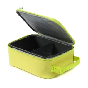 El interior cuenta con un revestimiento duro con un divisor ajustable diseñado para mantener los alimentos blandos como sándwiches separados de los elementos duros como recipientes para alimentos o bebidas. El revestimiento y el divisor son extraíbles para que pueda colocar recipientes bento de tamaño estándar de hasta 9 x 6,5″ dentro de la lonchera.