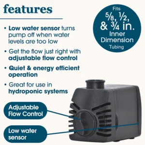 Ideal para usar con fuentes grandes, crear sus propias fuentes de agua personalizadas o usar para alimentar sistemas hidropónicos.