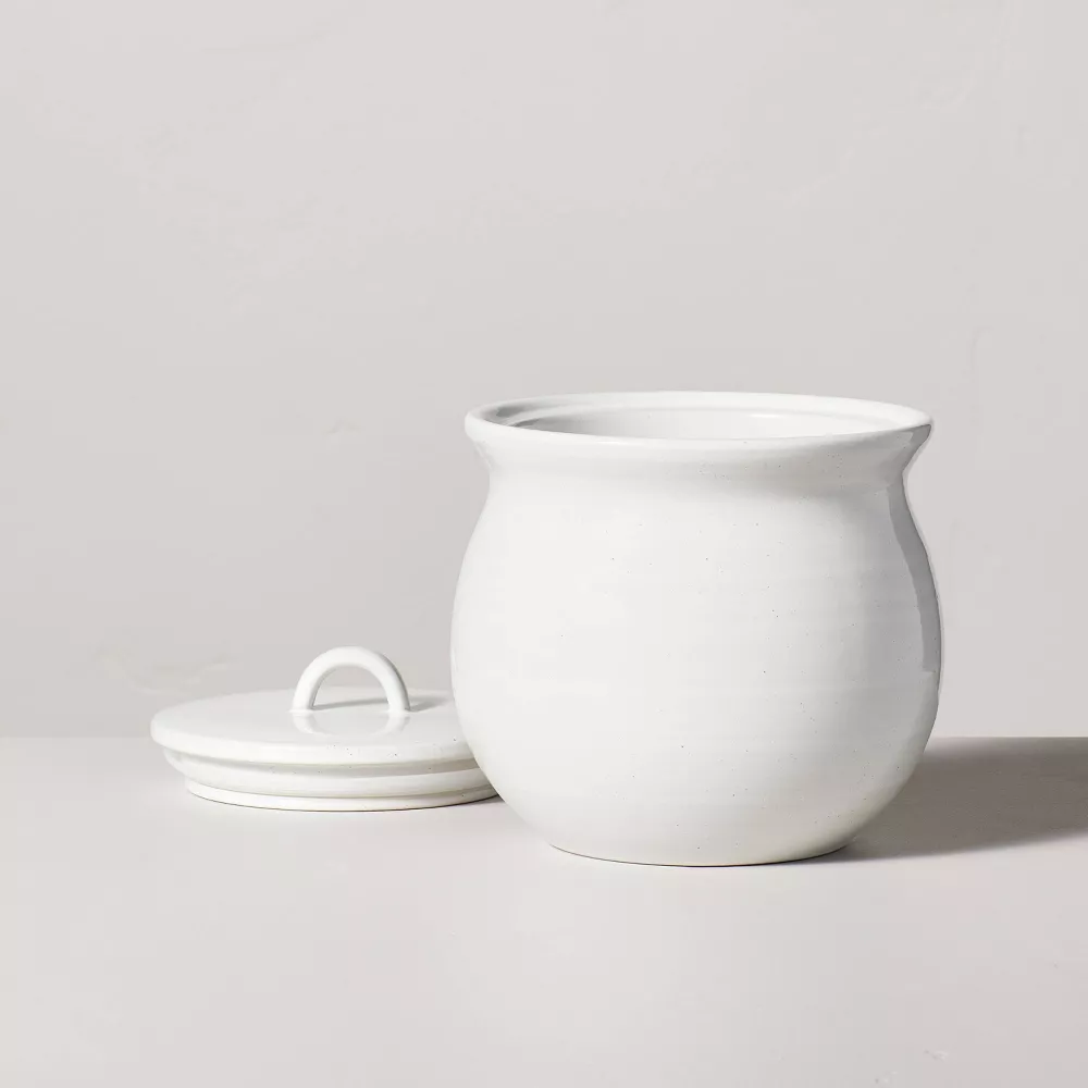 Revitalice la decoración de su cocina con el bote de cerámica de gres con borde acampanado de Hearth & Hand™ con Magnolia. Este bote de cerámica de gres vintage tiene un borde acampanado con una tapa para guardar azúcar, café, galletas u otros alimentos. Diseñado con una tapa con asa superior, este bote de cerámica de gres se puede colocar sobre la mesa o la encimera de la cocina y lavar a mano para una limpieza fácil.