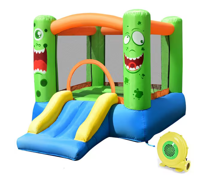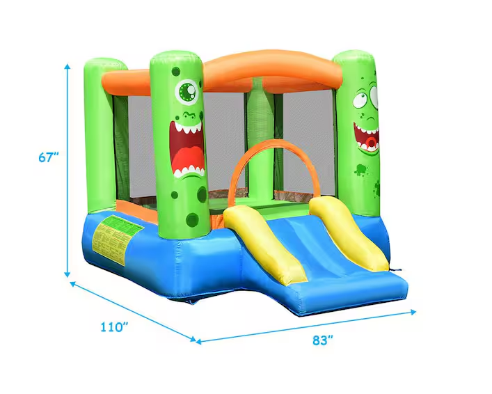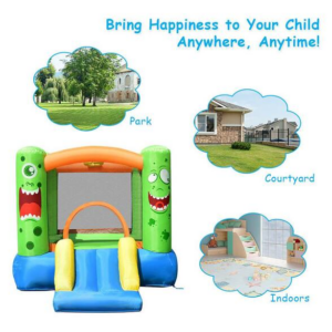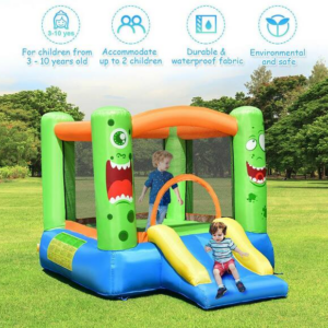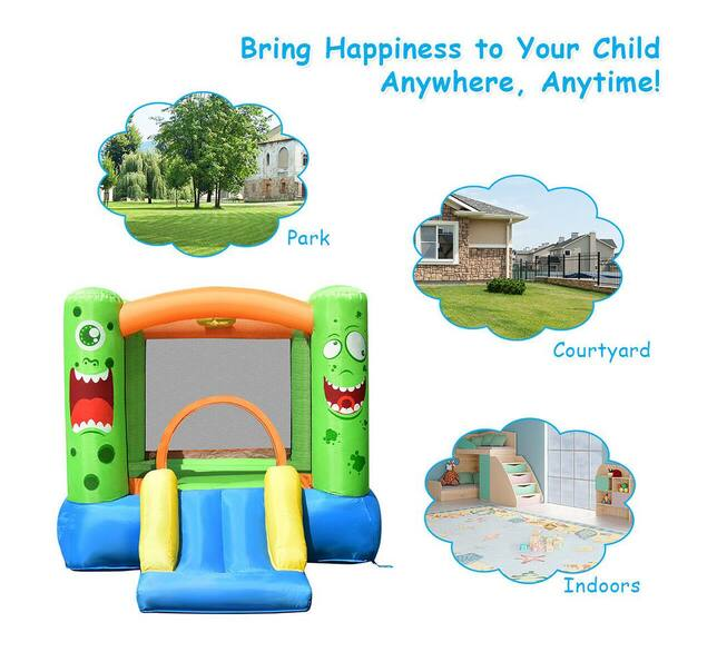 Accesorios dulces: esta casa inflable para saltar viene con una bolsa de transporte, un kit de reparación, 4 estacas para saltar y 4 estacas para soplar. Capacidad máxima de peso: 198 lbs. (Sugerencia: el peso de cada niño debe ser inferior a 99 lbs.) Adecuado para que 2 niños jueguen juntos, recomendado para edades: 3 años a 10 años.