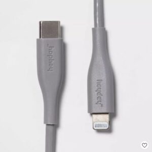 Aporta funcionalidad y estilo a tus accesorios esenciales con este cable USB-C a Lightning de heyday ™. Este cable de carga Lightning cuenta con un conector Lightning en un extremo y un conector USB-C en el otro para permitirle conectar sus productos Apple y otros dispositivos compatibles a una computadora, computadora portátil, cargador de pared y otros con un puerto USB-C. La longitud de cuatro pies le ofrece una longitud conveniente para enchufarlo al tomacorriente de la pared desde su cama o escritorio, mientras que el tono sólido le da un toque de su color favorito a su tecnología diaria.