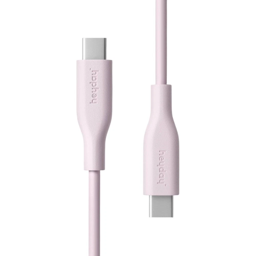 Elegante y funcional cable USB-C a USB-C de 3 pies de Heyday en rosa claro. Diseñado para una carga rápida y transferencia de datos entre dispositivos USB-C compatibles. Construcción duradera con chaqueta flexible y conectores reforzados. Ideal para teléfonos, tabletas, computadoras portátiles y accesorios.