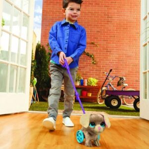 - JUGUETE DE CACHORRO ADORABLE Y ANIMATRÓNICO: Lleva el cachorro de peluche interactivo furReal Walkalots Tracks My Wheely Pup a dar un paseo por la casa con su correa de 3 partes fácil de armar