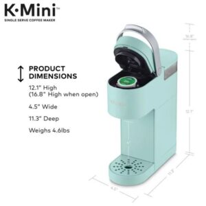 La cafetera individual Keurig K-Mini en Oasis presenta un diseño elegante con acabado mate y, con menos de 5 pulgadas de ancho, es el tamaño perfecto para cualquier espacio u ocasión. La cafetera K-Mini es fácil de usar, simplemente agregue agua fresca al depósito, coloque su cápsula K-Cup favorita, presione el botón de preparación y disfrute de un delicioso café recién hecho en minutos. Elija entre cientos de deliciosas variedades de cápsulas K-Cup para disfrutar de 6 a 12 onzas de su café, té, cacao y bebidas heladas favoritas. Con un depósito para una sola taza y almacenamiento para cables, la cafetera K-Mini es la cafetera portátil que hace que cualquier lugar sea perfecto para disfrutar de un excelente café. La cafetera K-Mini está disponible en una variedad de colores con acabado mate. Según los comentarios de los consumidores, hemos actualizado la K-Mini Brewer. Se han eliminado las reseñas de clientes relacionadas con la versión anterior de la cafetera