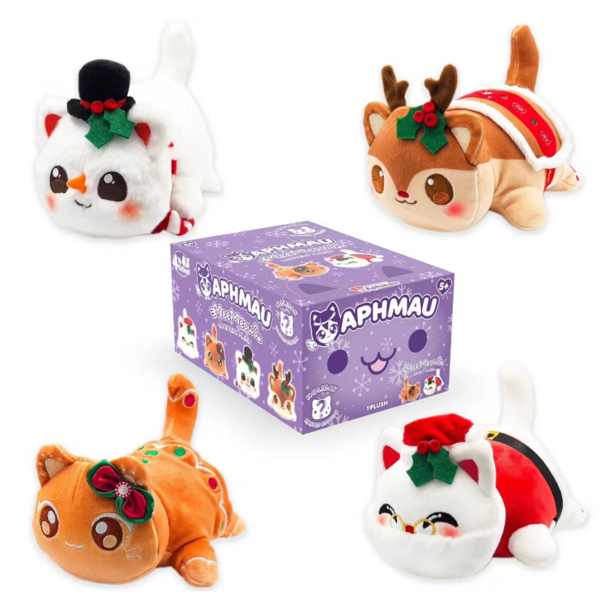 Aphmau, la mega estrella de videojuegos y creadora de YouTube, es conocida por su amor por los gatos y su colección de adorables peluches MeeMeow. The Holiday Collection es el último lanzamiento del universo de peluche MeeMeows Mystery de Aphmau: una nueva línea de peluches, perfecta para Aphmau y los amantes de los gatos. ¡Hay 4 MeeMeows temáticos navideños diferentes para coleccionar, incluidos Santa Cat, Snowman Cat, Gingerbread Cat y Reindeer Cat! ¡Una felpa Aphmau MeeMeow Mystery es el regalo perfecto para los fanáticos de Aphmau, los amantes de la colección, los jugadores y los amantes de los gatos por igual! ¡Echa un vistazo al canal oficial de Aphmau en YouTube y descubre a Aphmau y sus MeeMeows en los videos! Del entorno de tarifa de mascotas y humo Nuevo con etiqueta.