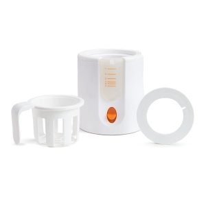El Munchkin Speed es un calentador de vapor de calentamiento rápido que calienta las botellas en tan solo 90 segundos. Esta unidad funciona con una variedad de tamaños y materiales de biberones, pero no funcionará con bolsas de almacenamiento de leche materna. Tiene un apagado automático cuando termina el ciclo, pero no hay sonido audible para decirles a los padres que es hora de quitar la botella. Este defecto de diseño podría provocar que los padres pierdan el final del ciclo, lo que podría conducir a una botella que está demasiado caliente ya que se sobrecalienta rápidamente cuando se deja en la cámara. Si bien nos gustan la mayoría de las cosas que ayudan a los padres y les dan tiempo, las preocupaciones de seguridad con Speed hacen que sea más cálido que no recomendamos. Creemos que unos minutos más para calentar una botella es aceptable si eso significa evitar riesgos potenciales.