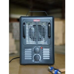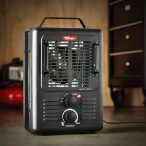 El calentador eléctrico Hyper Tough de 1500 W, resistente, de 2 configuraciones y con termostato en negro, es una opción perfecta cuando necesita calor adicional. Se calienta rápidamente y viene con una configuración de potencia baja y alta. Además de dos configuraciones de calor, también hay una configuración de «solo ventilador» que proporciona un flujo de aire frío si es necesario. Este calentador eléctrico, con su peso liviano, tamaño pequeño y asa de transporte incorporada, permite transportarlo fácilmente dondequiera que se necesite. Este calentador se puede utilizar en su garaje, taller o en cualquier lugar interior. Una luz indica cuando el calentador está encendido y funcionando. Por seguridad, el calentador está equipado con una función de apagado en caso de vuelco y un apagado automático en caso de que la unidad se sobrecaliente, lo que brinda mayor seguridad y confiabilidad. Además de estas dos características de seguridad, el calentador permanece frío al tacto cuando está en funcionamiento. No se incluyen un control mecánico ni un control remoto para una operación sencilla. Este calentador se recomienda para habitaciones de hasta 160 pies cuadrados.