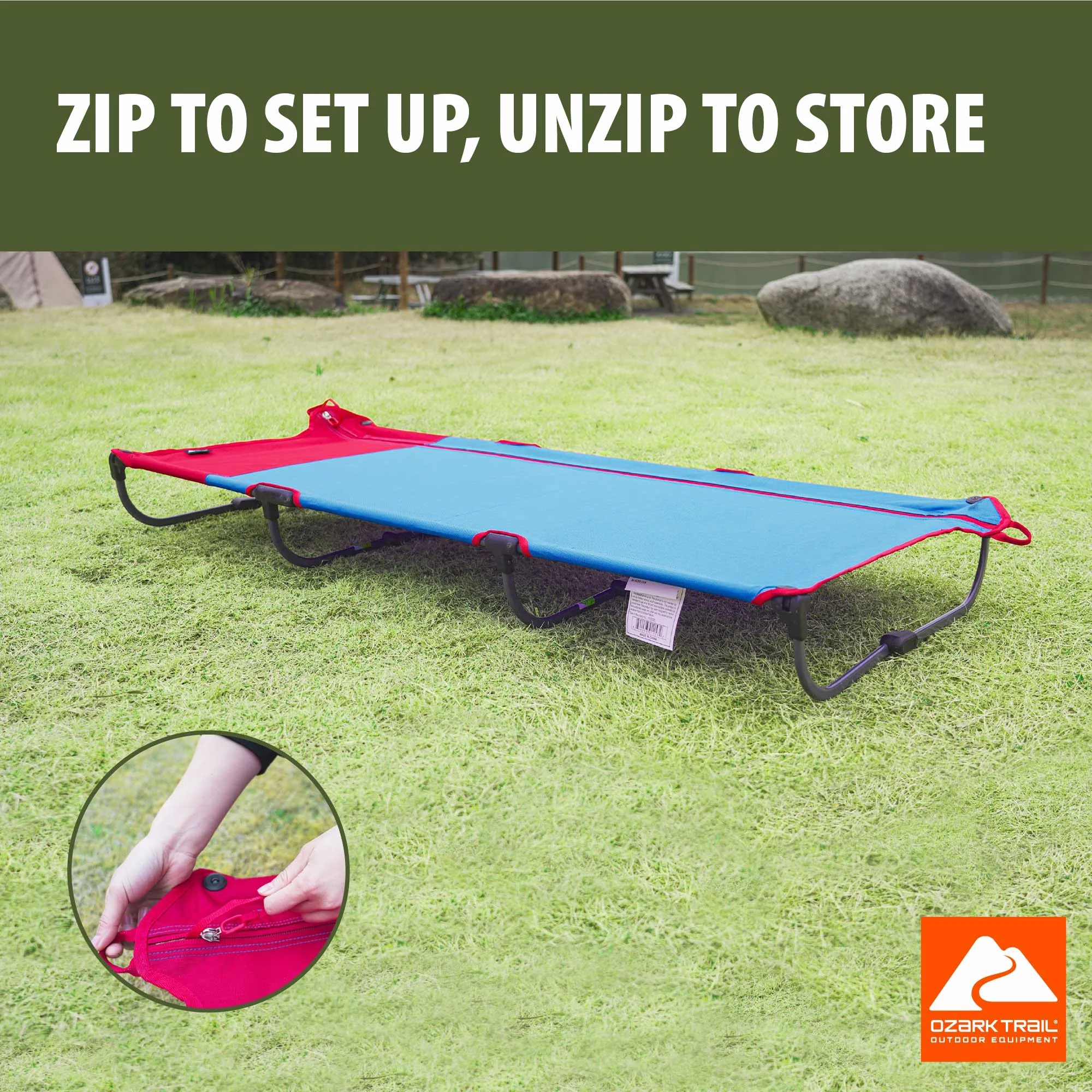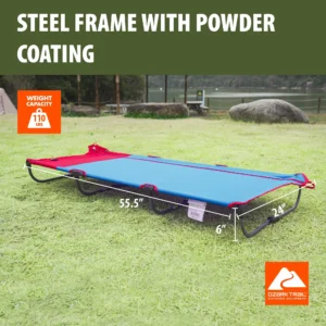 Proporcione a sus pequeños un lugar cómodo para dormir que ahorre espacio bajo las estrellas, con la catre con zíper para Niños Ozark Trail. Esta catre cuenta con un diseño innovador, plegable compacto que le permitirá mantener a su hijo bien descansado mientras acampa. Esta versátil catre también se puede utilizar como una opción para un lugar adicional para dormir en casa. La configuración es rápida y sencilla, gracias al diseño de zíper y tiene 5 patas de fácil bloqueo para una estabilidad ideal. El marco de acero está recubierto de polvo para una máxima durabilidad y puede soportar hasta 110 libras, por lo que puede tener la tranquilidad de saber que sus hijos tendrán un sueño seguro. A pesar de su pequeño tamaño de embalaje, esta catre mide 55,5 x 24 x 5,5 pulgadas, proporcionando suficiente espacio para una cómoda y relajante noche de sueño bajo las estrellas. Mantenga a sus hijos cómodos y bien descansados durante su próxima aventura de campamento con la catre con zíper para Niños Ozark Trail.