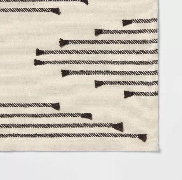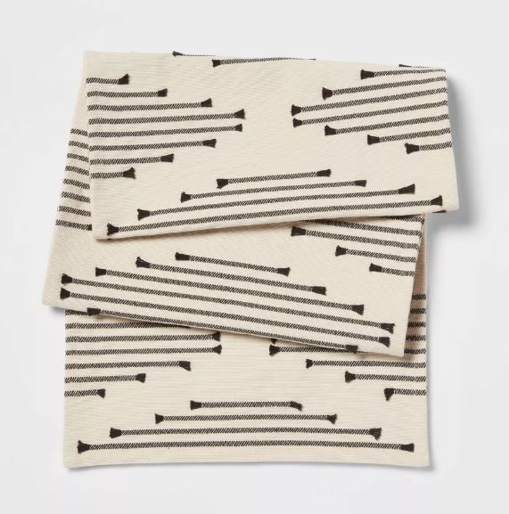 Eleve su paisaje de mesa para cualquier ocasión con este corredor de mesa Diamond Modern de algodón de Threshold™. Este corredor de mesa rectangular agrega una capa de funcionalidad y estilo a la decoración de su comedor. Presenta un patrón de diamante moderno negro contrastante sobre un fondo color crema y está decorado con extremos con flecos para una apariencia divertida. El camino de mesa 100% algodón ayuda a proteger su superficie contra rayones, derrames y suciedad. Un telón de fondo acogedor para su vajilla, jarrones y otros centros de mesa decorativos, se puede lavar a máquina para un fácil cuidado.