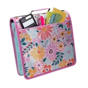 Carpeta de anillos de nailon estampada de 3″ con bolsillos internos y externos -Bunch O Flowers