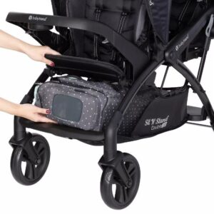 El Sit ‘N Stand® combina la máxima comodidad y seguridad con un estilo elegante y hará que su viaje al parque sea fácil y agradable. Ambos asientos tienen un arnés de seguridad de 5 puntos para máxima seguridad. El asiento delantero tiene un dosel extraíble de 2 paneles con trinquete completo y el asiento trasero tiene un dosel fijo con viseras para bloquear el sol. Este cochecito también incluye un pliegue con una sola mano sin complicaciones, una canasta extragrande para todas sus necesidades de viaje y una consola para padres con dos portavasos y un compartimento cubierto.