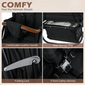Además, la gran bolsa de almacenamiento proporciona un amplio espacio para guardar las pertenencias de tu bebé, manteniendo todo al alcance durante tus salidas.