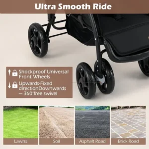 Paseo suave, la seguridad es lo primero: Deslízate por cualquier terreno con facilidad gracias a las ruedas delanteras universales bloqueables y las ruedas traseras con un sistema de frenos de un solo paso.