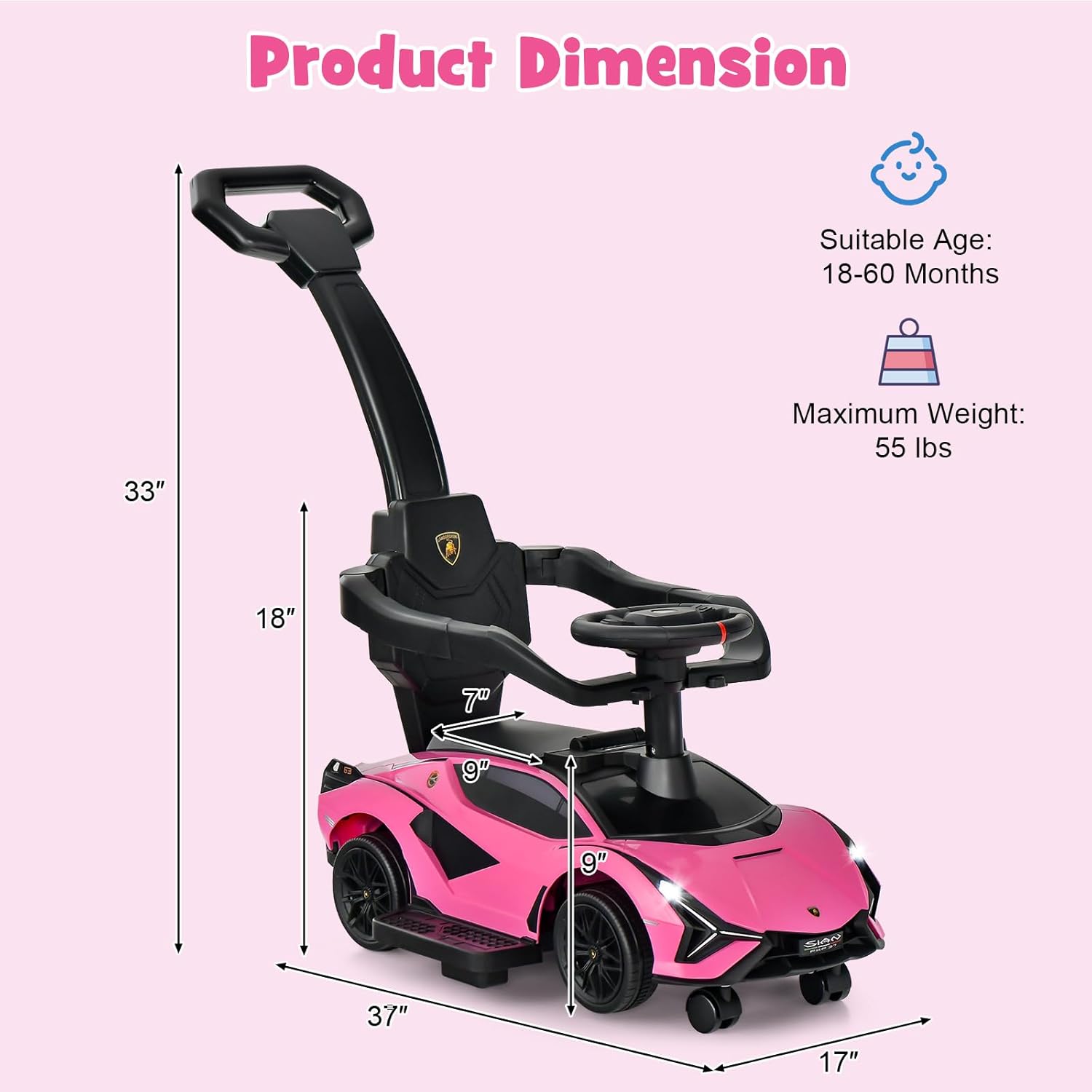Material seguro y de alta calidad: Fabricado con polipropileno premium no tóxico, este juguete de empuje para niños tiene una capacidad de carga máxima de hasta 25 kg, ideal para niños de 1,5 a 5 años. Para mayor seguridad, el dispositivo antivuelco protege eficazmente a los niños.