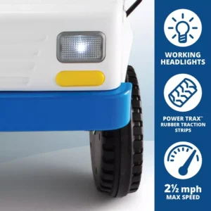 MÚSICA Y LUCES INCLUIDAS: Los niños pueden disfrutar de sus canciones favoritas con la radio FM y el reproductor de MP3 integrados, mientras que los faros funcionales iluminan sus aventuras de juego.
