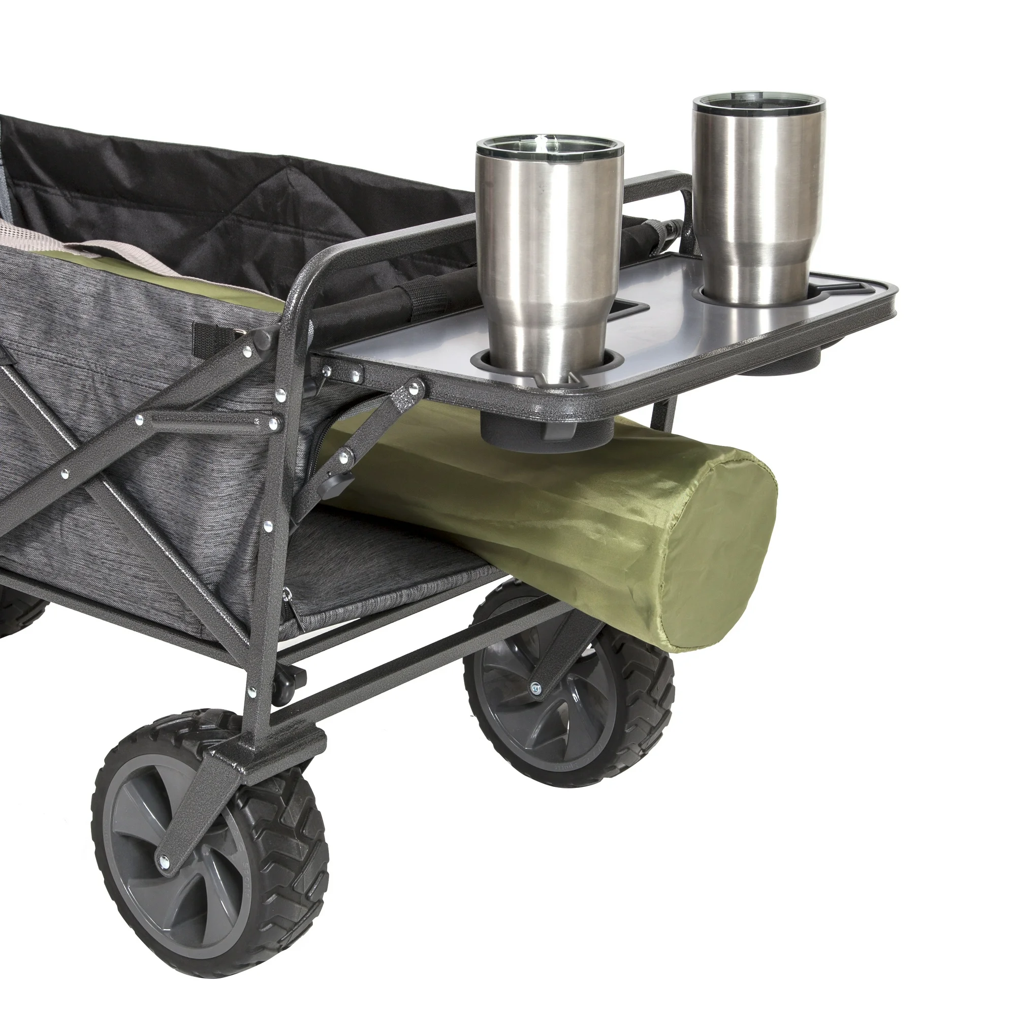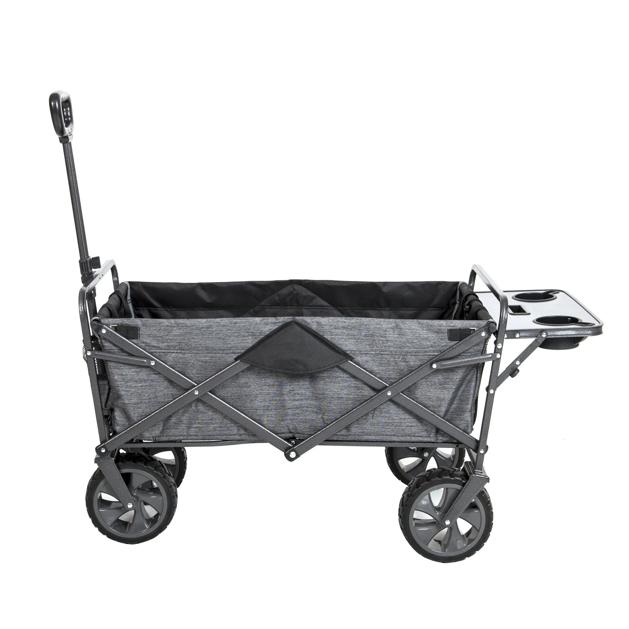 Presentamos el vagón plegable Macsports con un nuevo portón trasero con cremallera ¡El portón trasero con cremallera es súper práctico para llevar artículos más largos como sillas y marquesinas! Este vagón incluye una mesa trasera plegable equipada con dos portavasos y un soporte para tablet/teléfono. Tiene una capacidad de peso de 300 libras, por lo que es perfecto para el transporte de equipo hacia y desde el parque, eventos deportivos, conciertos y mercados de agricultores. También es ideal para trabajos de jardinería y césped. El vagón está construido con un robusto marco de acero y tela de poliéster y cuenta con dos portavasos delanteros adjuntos. Cuando no está en uso, se puede plegar de forma compacta para su transporte en un vehículo o para su fácil almacenamiento en casa. La mejor parte es que se abre y se pliega en segundos, sin necesidad de montaje.