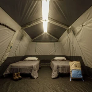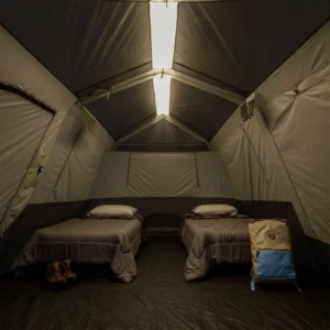 ARMADO INSTANTÁNEO: El cuerpo de la tienda cuenta con postes preinstalados que se fijan automáticamente, permitiendo un tiempo de armado de tan solo 2 minutos.