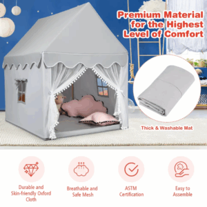 Casita de juegos multifuncional: Ya sea en casa, en la guardería, en el patio o en el parque, esta pequeña casa siempre será el paraíso de los niños para diversas actividades. Tus hijos y sus amigos podrán pasar la tarde leyendo, jugando al ajedrez o durmiendo la siesta en esta acogedora casita de juegos.