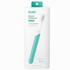 Cepille mejor con funciones beneficiosas para usted, no con trucos. El kit básico de cepillo de dientes eléctrico quip lo hace simple y sostenible con un mango premium que conserva de por vida, un cabezal de cepillo de cerdas suaves reemplazable (rascador de lengua en la parte posterior), una batería AAA reemplazable y una funda de viaje multiusos que también funciona como un Soporte y soporte para espejo. A diferencia de algunos cepillos eléctricos que son grandes y voluminosos, quip es delgado y liviano con una batería de larga duración de 3 meses (sin cables ni cargador voluminoso). Simplemente presione el botón «q» para realizar una limpieza suave y eficaz con todas las funciones de guía que recomiendan los dentistas: vibraciones sónicas sensibles, temporizador de 2 minutos, pulsos de 30 segundos. El diseño elegante y listo para viajar se guarda fácilmente en cualquier bolsillo, cartera o bolso para llevar. Además, es resistente al agua y apto para la ducha. Producto reutilizable: cabezal de cepillo reemplazable para reducir el desperdicio.