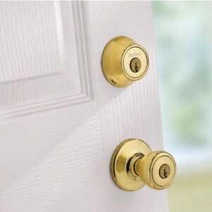 Perilla redonda para puerta de entrada con llave, residencial, latón pulido