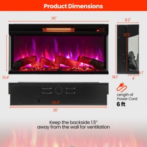 ● Funcionamiento Seguro y Silencioso: Con certificación CSA, la chimenea eléctrica está equipada con un sistema automático de protección contra sobrecalentamiento. Además, su funcionamiento silencioso (<48 dB) y su temporizador de 9 horas garantizan que no se interrumpa su tranquilidad mientras se relaja. La chimenea también cuenta con un modo de suspensión que solo enciende la luz de las brasas y el calentador. ● 3 modos de funcionamiento: Use esta chimenea eléctrica con o sin calor según sus preferencias. Puede ajustar la temperatura, programar un temporizador o cambiar entre Celsius y Fahrenheit con la pantalla táctil o el control remoto. Nota: Deje al menos 3,8 cm (1,5") de espacio en la parte trasera de la chimenea eléctrica para facilitar la ventilación. Dimensiones generales 91,4 cm x 20,8 cm x 46,5 cm Longitud del cable de alimentación 1,8 m Peso neto 17,8 kg Voltaje 120 V Frecuencia 60 Hz Potencia 1500 W Amperaje 12,5 A BTU 5118 BTU Alcance de calentamiento 93,5 m²