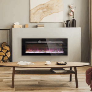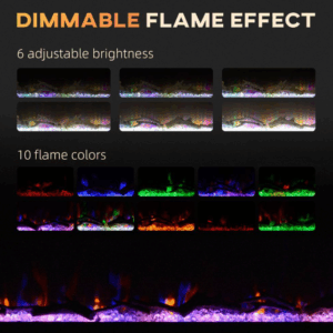 Ambiente realista: esta chimenea de pared cuenta con leños y cristales de imitación de fuego, 6 niveles de brillo ajustables y diez colores de llama. Úsela con o sin calefacción para disfrutarla todo el año.
