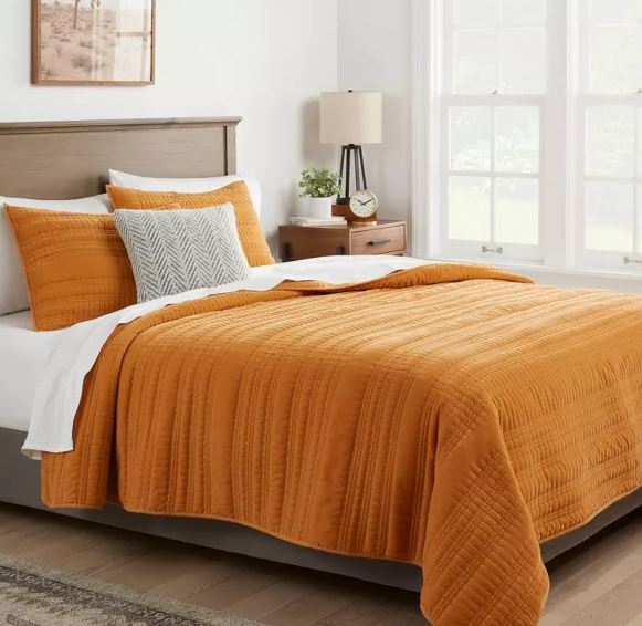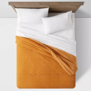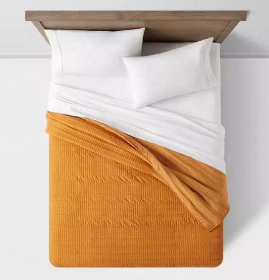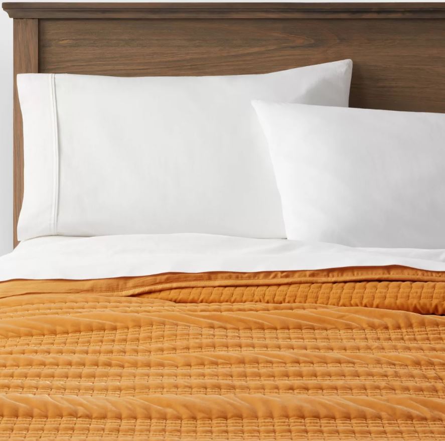 Dale una capa extra de calidez a tu rincón para dormir con esta colcha Lofty Velvet de Threshold™. Confeccionada con un relleno generoso, esta colcha te envuelve en una comodidad acogedora noche tras noche. La colcha está adornada con un diseño acolchado en un tono sólido para una apariencia encantadora y al mismo tiempo brinda un elemento decorativo a la parte superior de su cama.